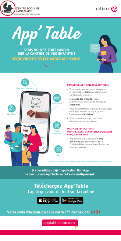 Le Groupe Elior a réalisé une nouvelle application mobile afin de pouvoir consulter plus facilement les menus du restaurant scolaire sur deux semaines, connaitre les différents allergènes contenus dans les plats… A TELECHARGER