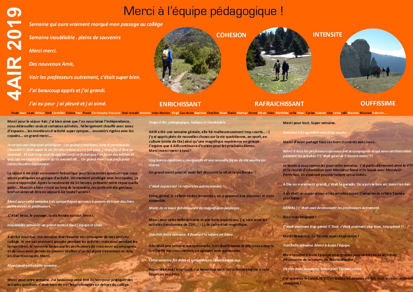 Au mois de mai, les élèves de 4ème ont eu  l'occasion de partir pendant une semaine plein air à Die (26).